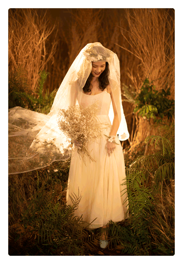 这次的拍摄,朱磊老师围绕着展现《花嫁》去创作拍摄。利用裙子以及造型老师精心制作的贴花耳饰作为拍摄灵感,展示女生对于公主花嫁的别样之美。