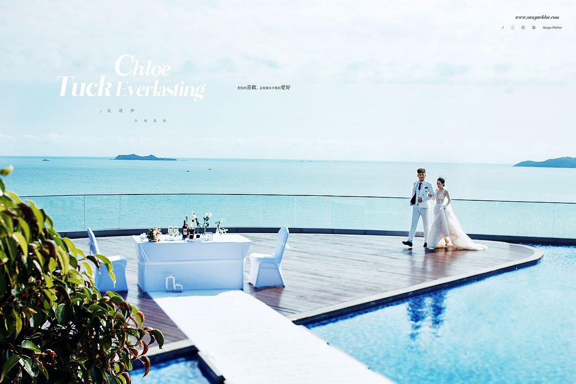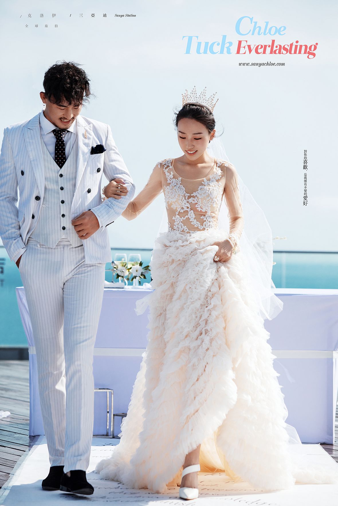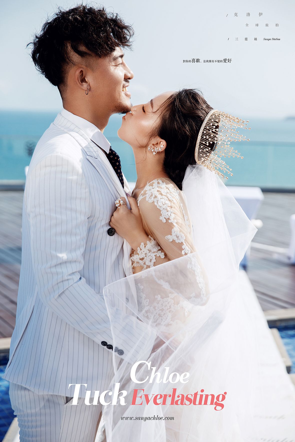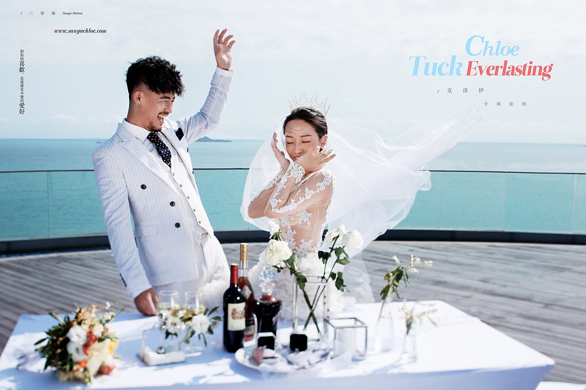 克洛伊全球摄影总监朱磊老师为拍摄制订了一系列方案。海洋婚礼主题婚纱照,清新自然的幸福感更能表达海洋婚礼主题的风格。
