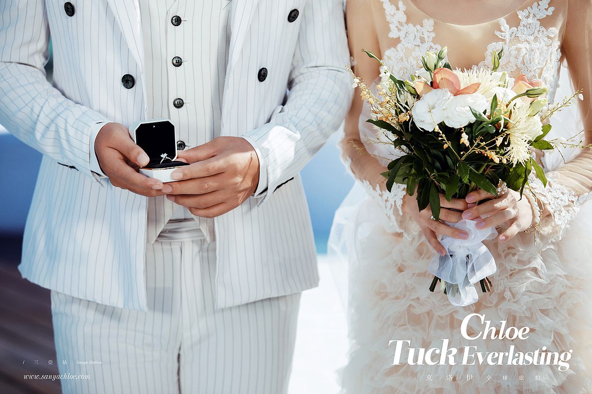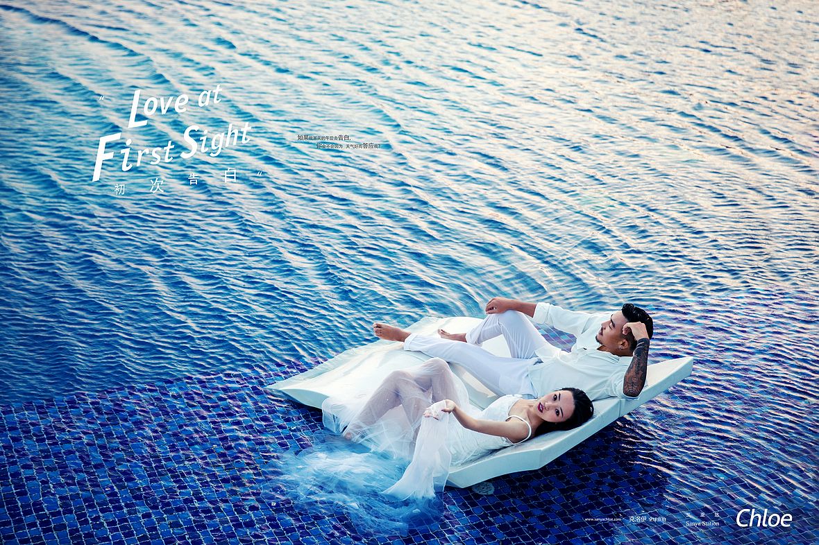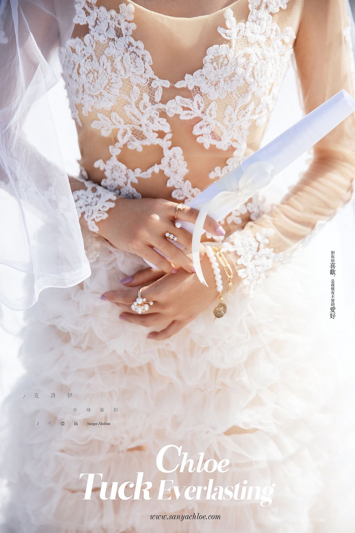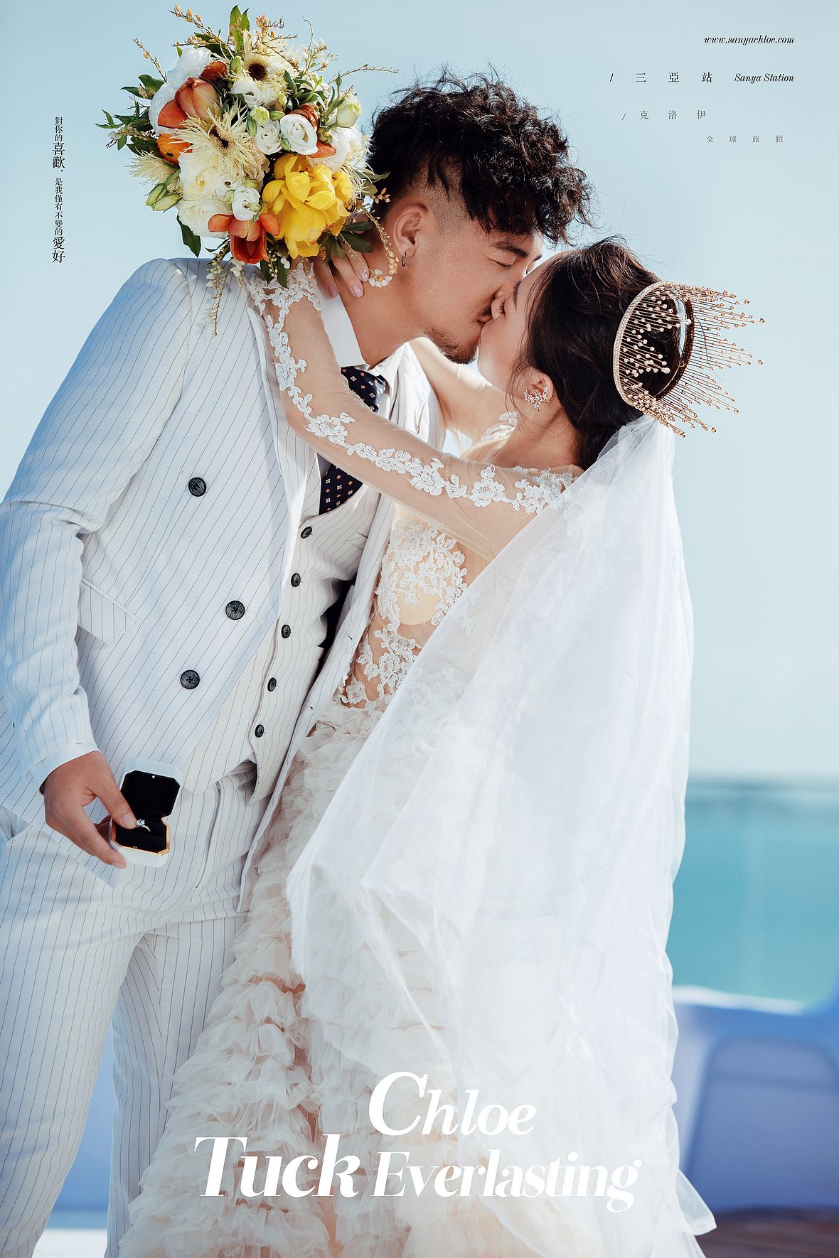 克洛伊全球摄影总监朱磊老师为拍摄制订了一系列方案。海洋婚礼主题婚纱照,清新自然的幸福感更能表达海洋婚礼主题的风格。