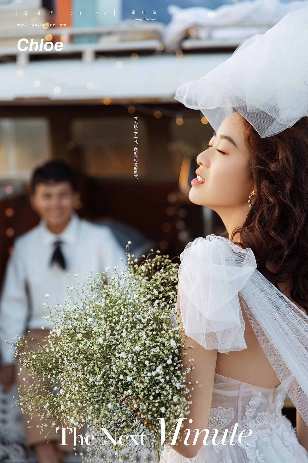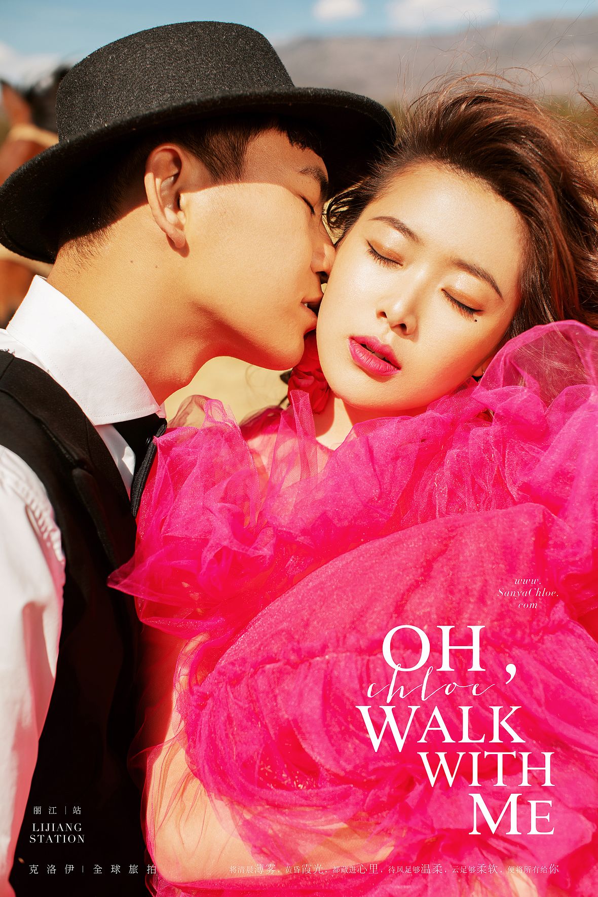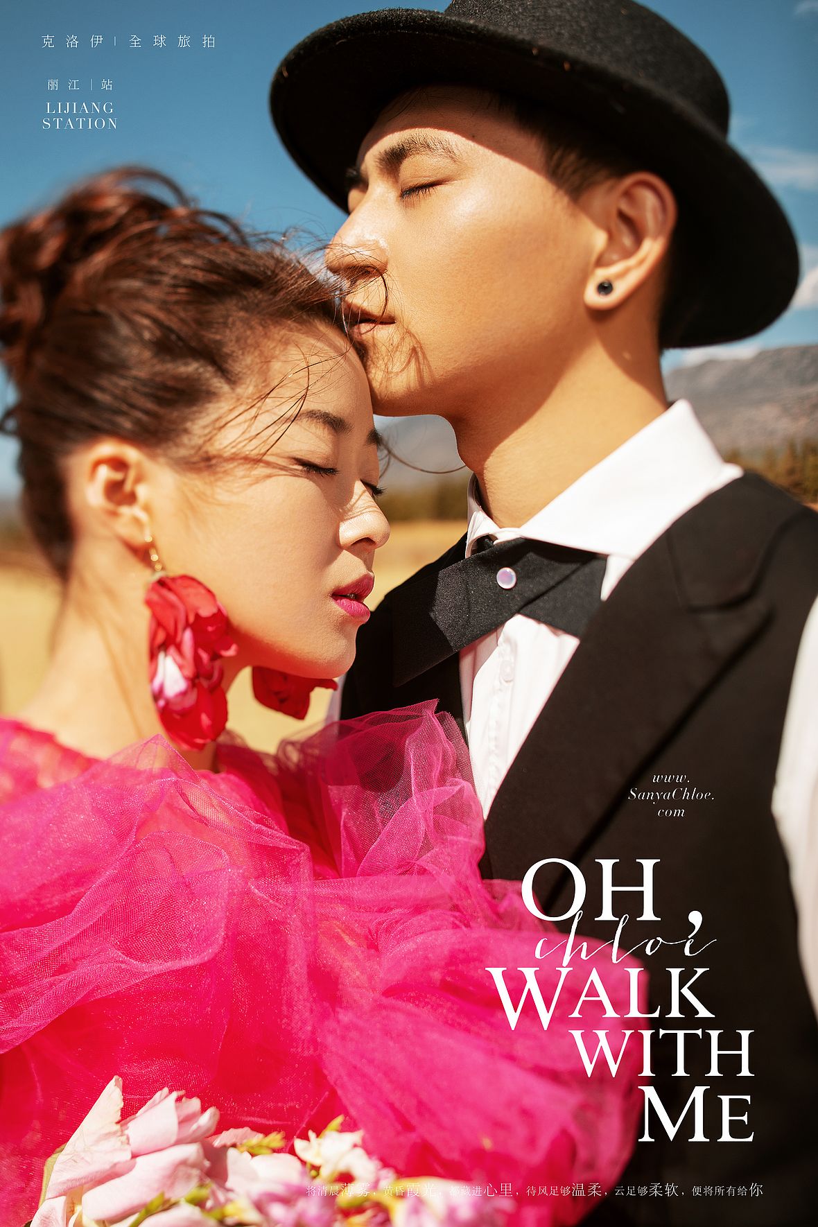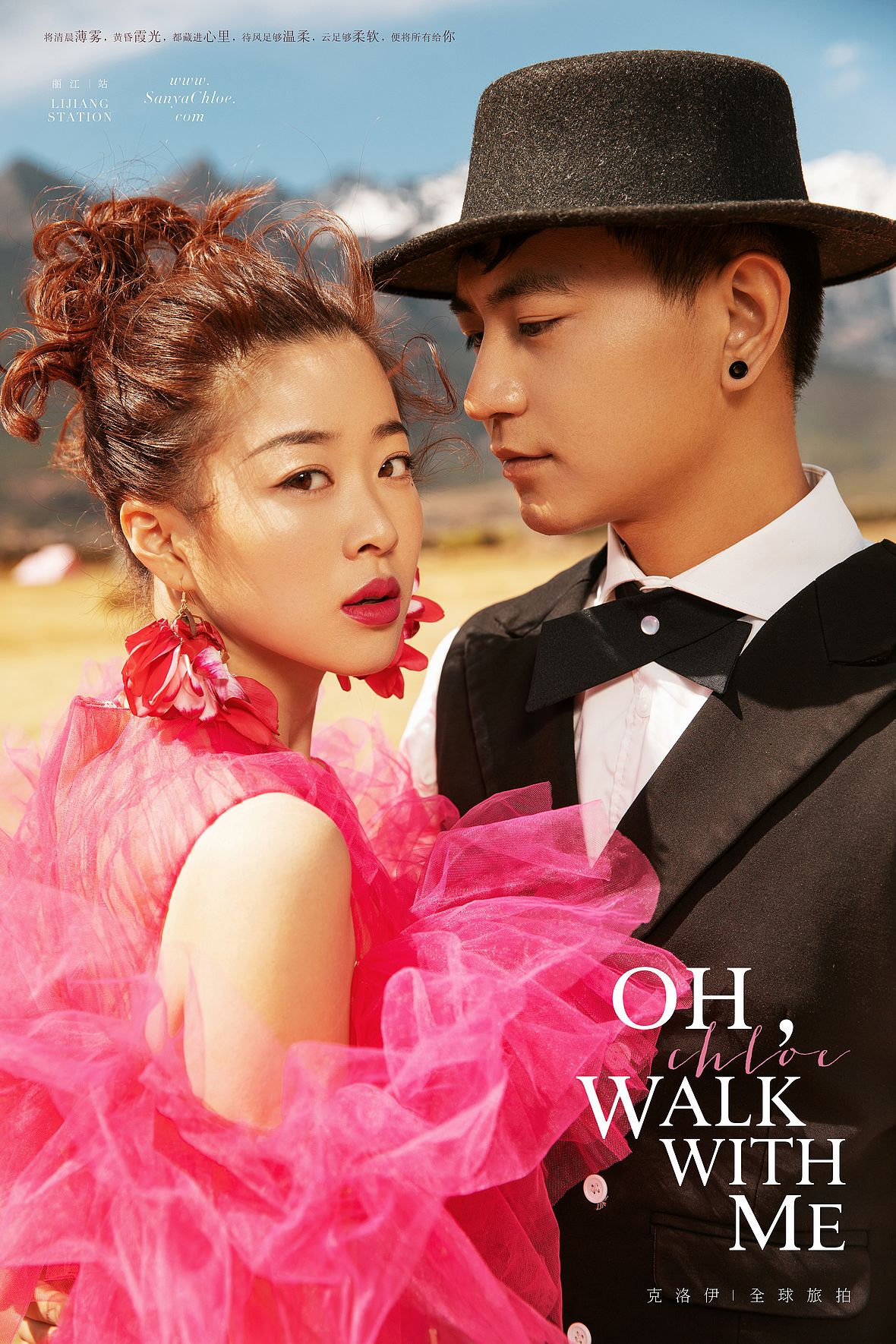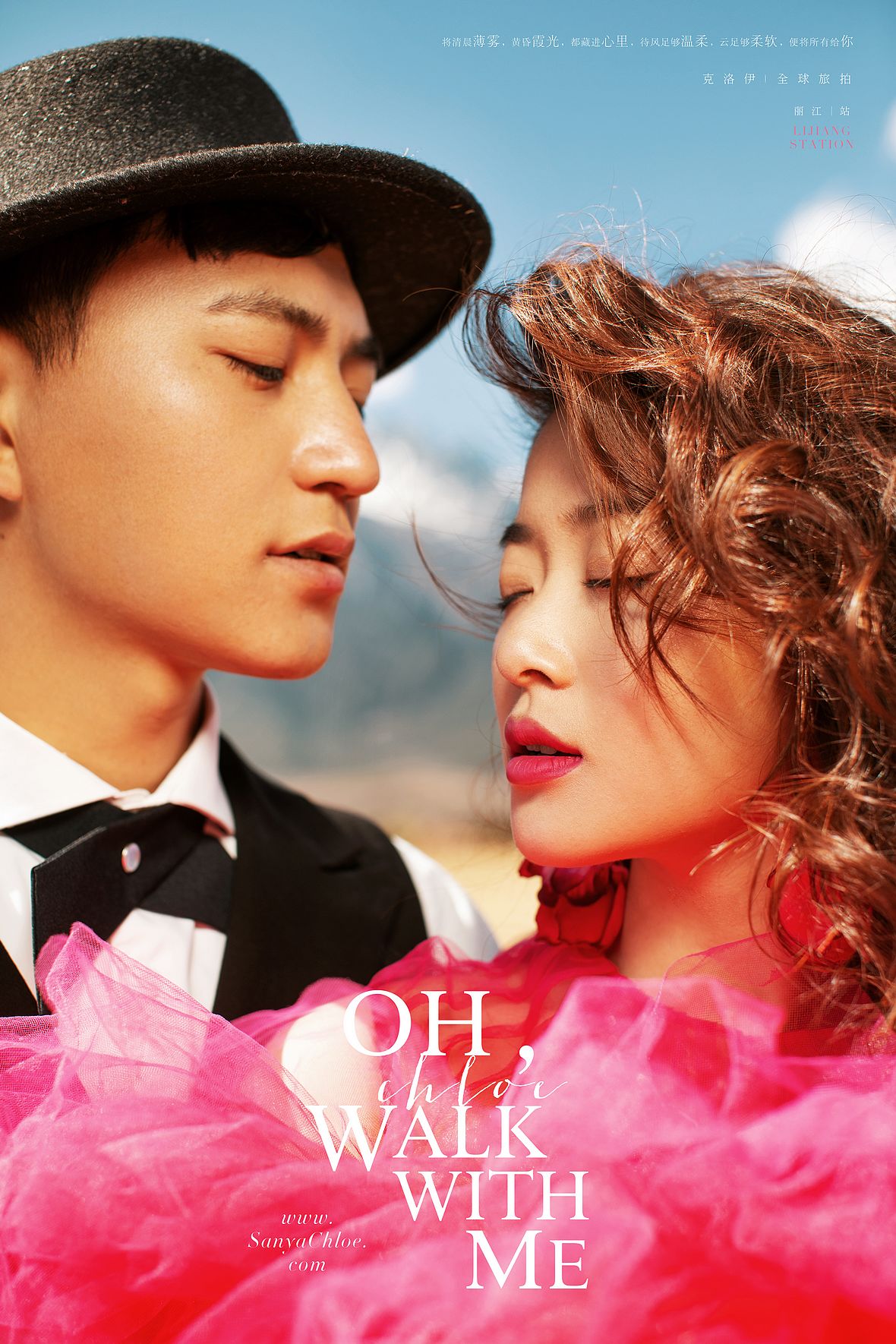 雪山巍峨,云朵缤纷,不同于其他马场婚纱照风格,这里更有西南地域的色彩。这不仅是来自丽江的文化渲染,更归功于克洛伊创作团队的精心制作。