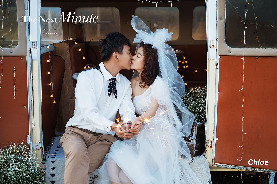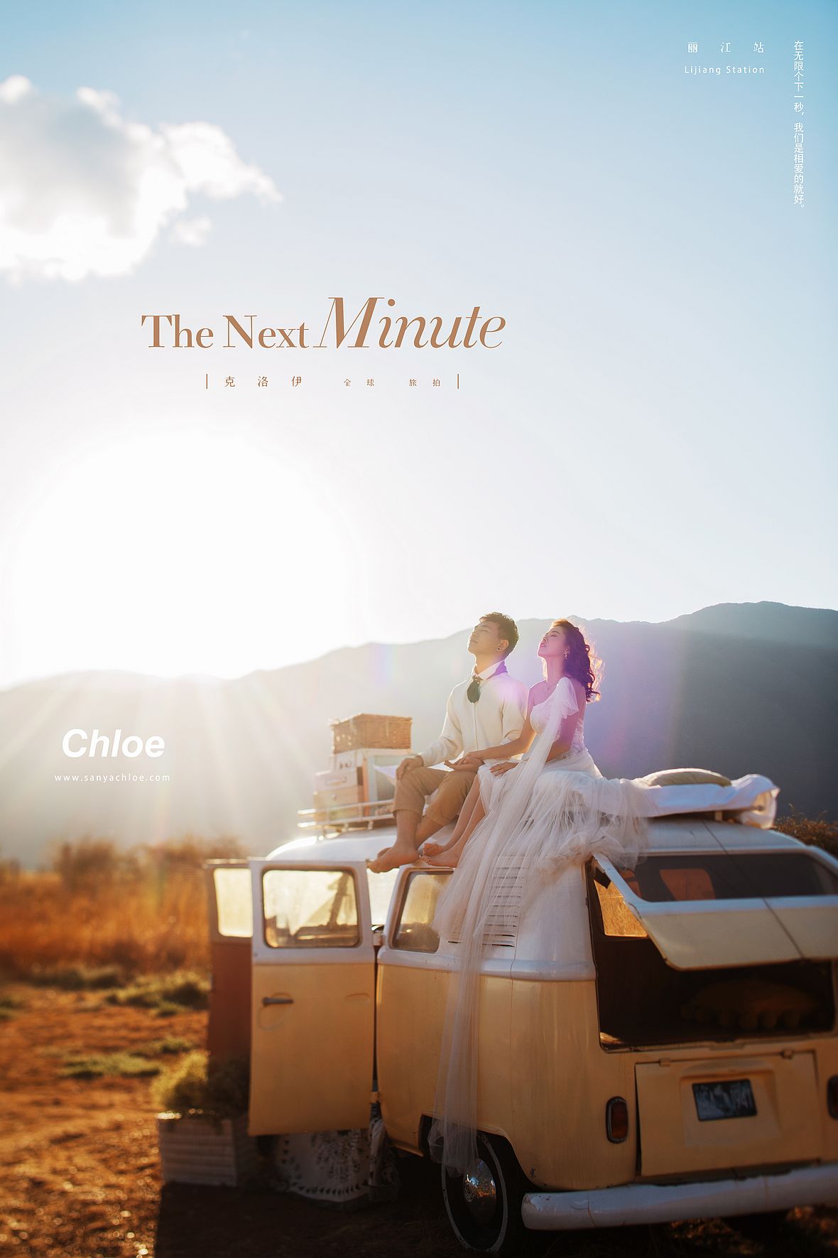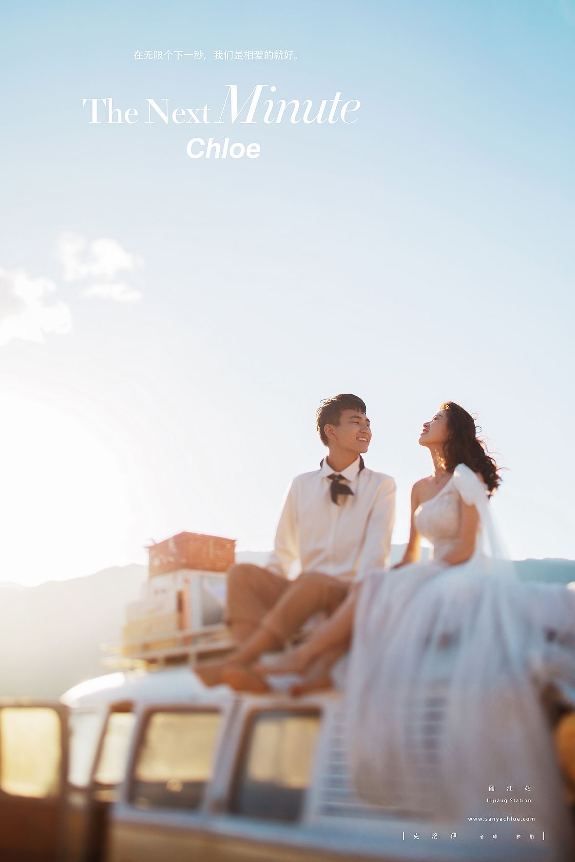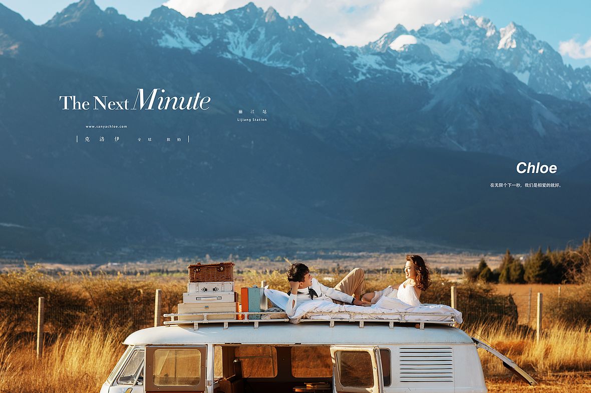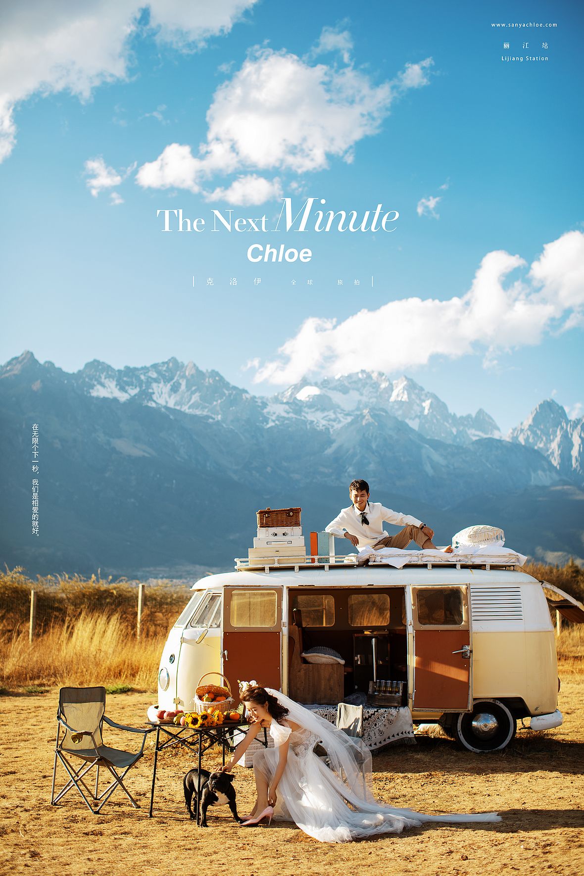 在午后的山色中,结合复古巴士的温馨元素,利用其功能,在车顶、车里或是车旁,克洛伊全球摄影师阿龙将情侣甜蜜互动定格成像。