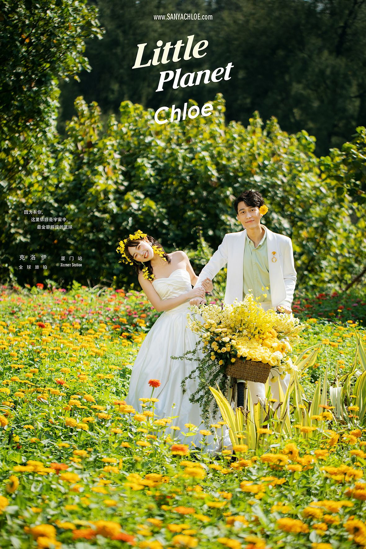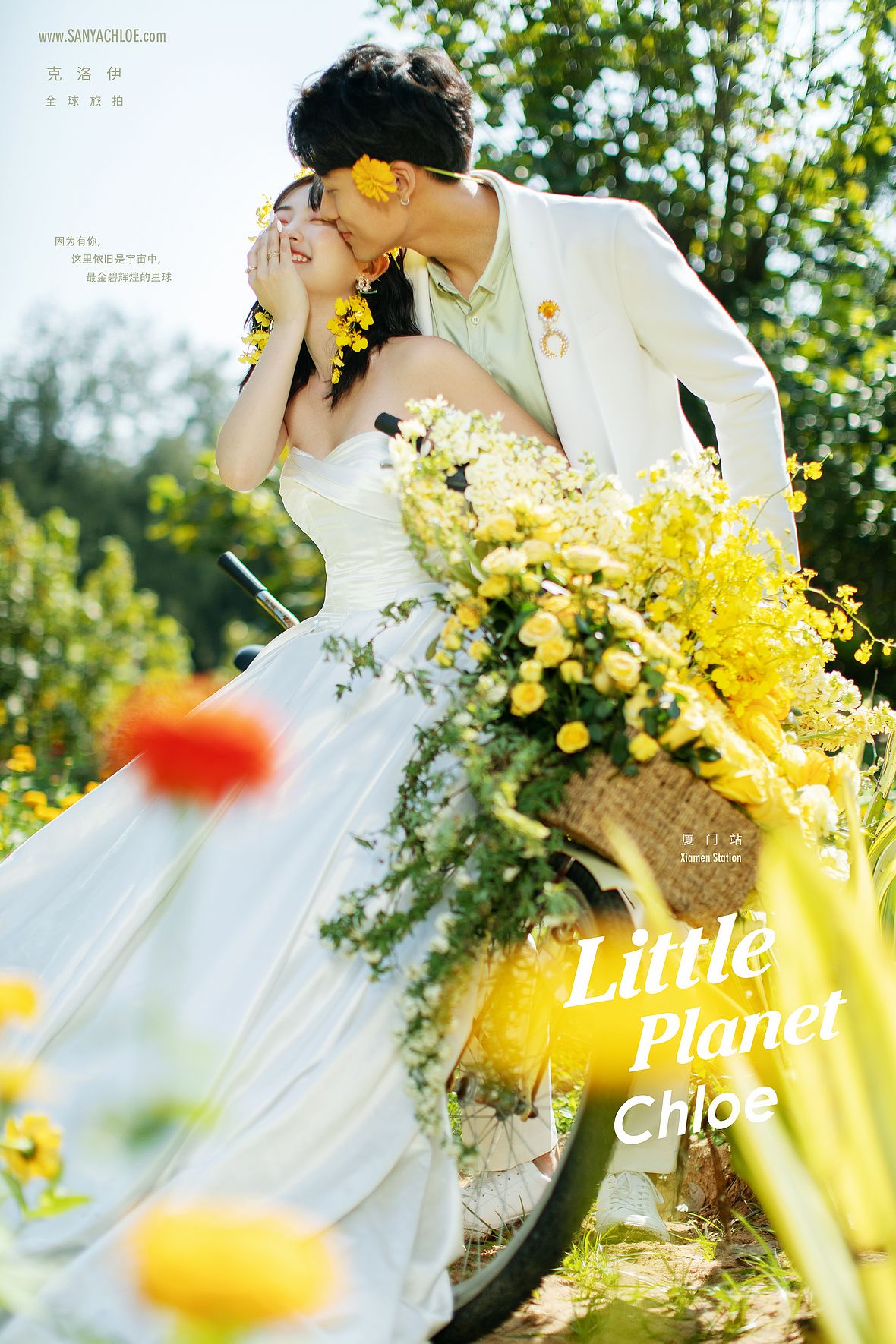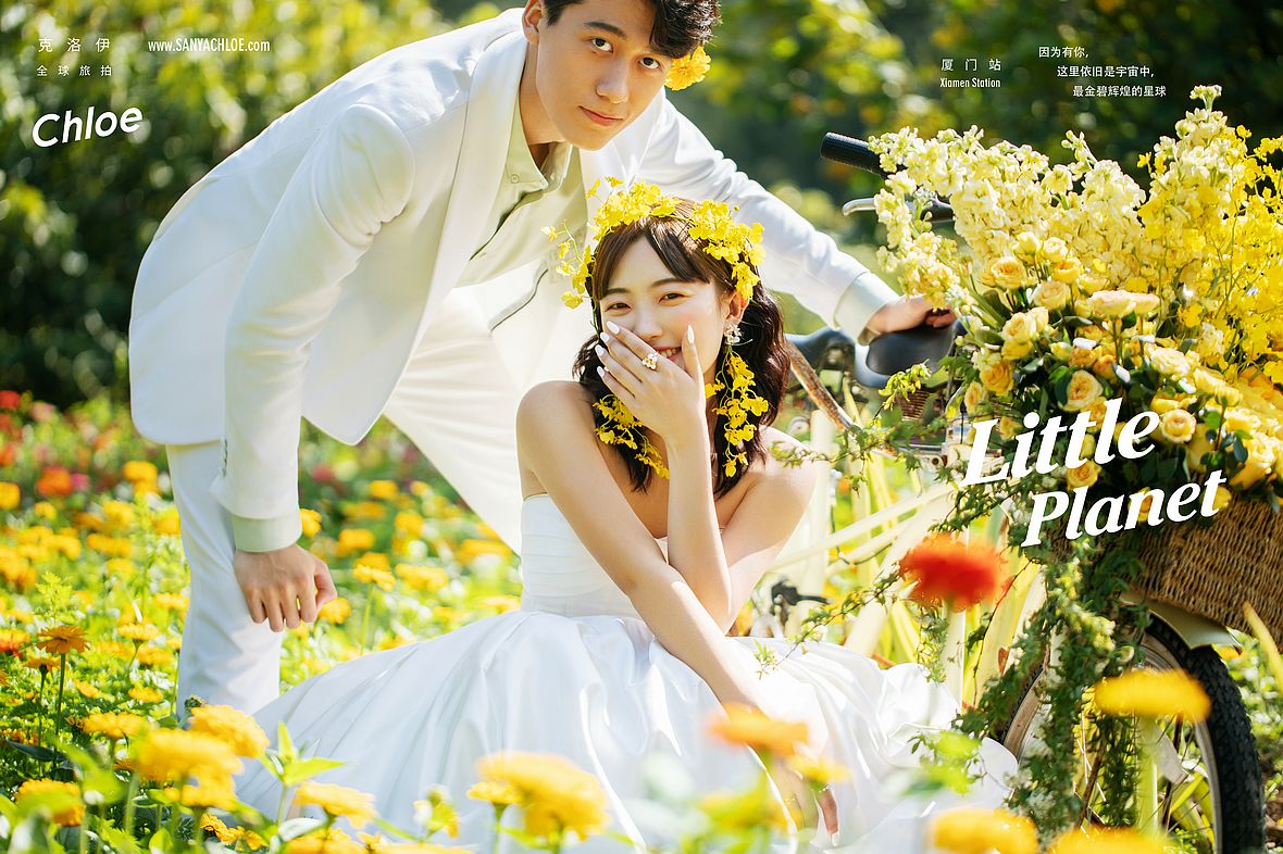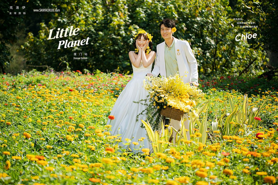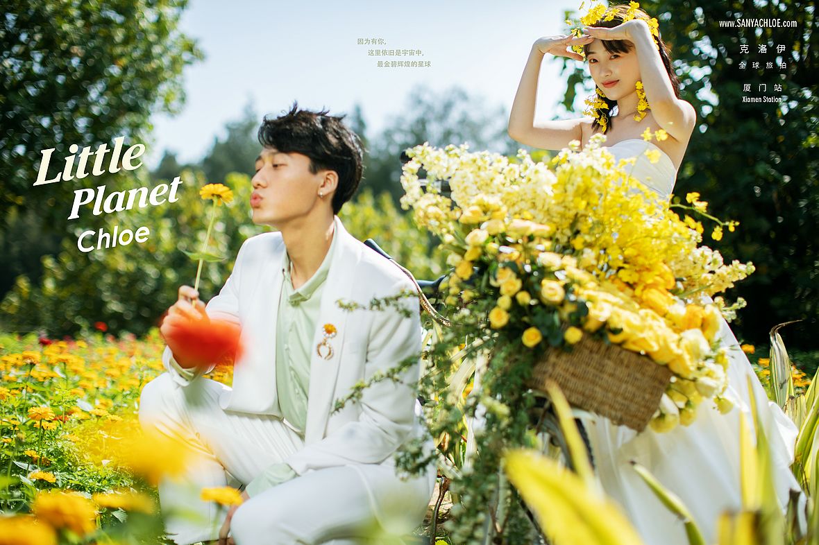 在厦门湾火山地质公园的入园处,满园的的春日景象分外迷人。园中开满了色彩明艳的百日菊,绿意盎然生机蓬勃。春天就该与花共舞,关于春天的甜美婚纱照,就该这样美好浪漫。
