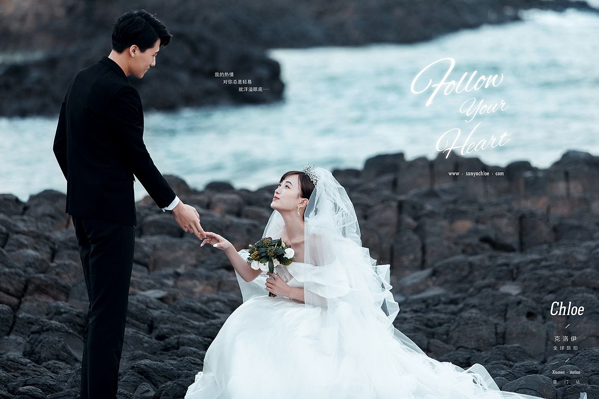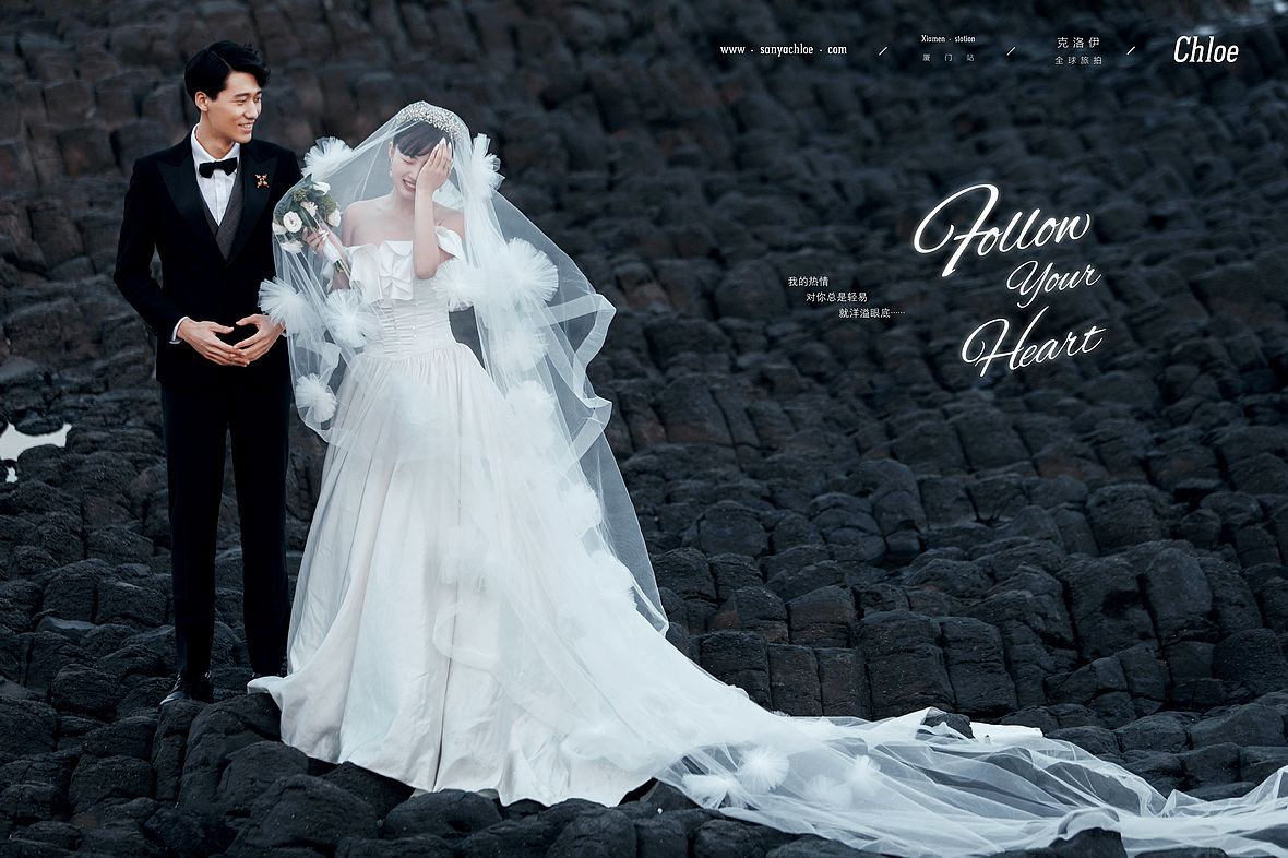 这片因数千年前火山活动留下痕迹的黑色礁石,与其他礁石不一样,天生带着不凡的色彩。在这里,唯美婚纱照该如何呈现?和小伊一起往下看吧~