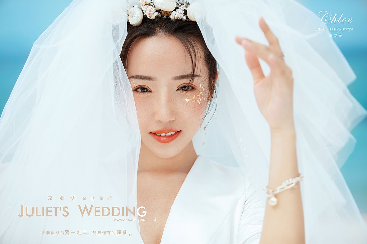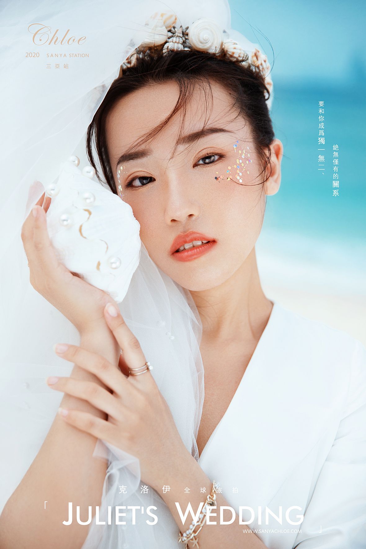 乐乐老师为这次主题的拍摄,手工制作的贝壳皇冠,搭配上层次感的短头纱,犹如大海的女儿一般,那样的美。