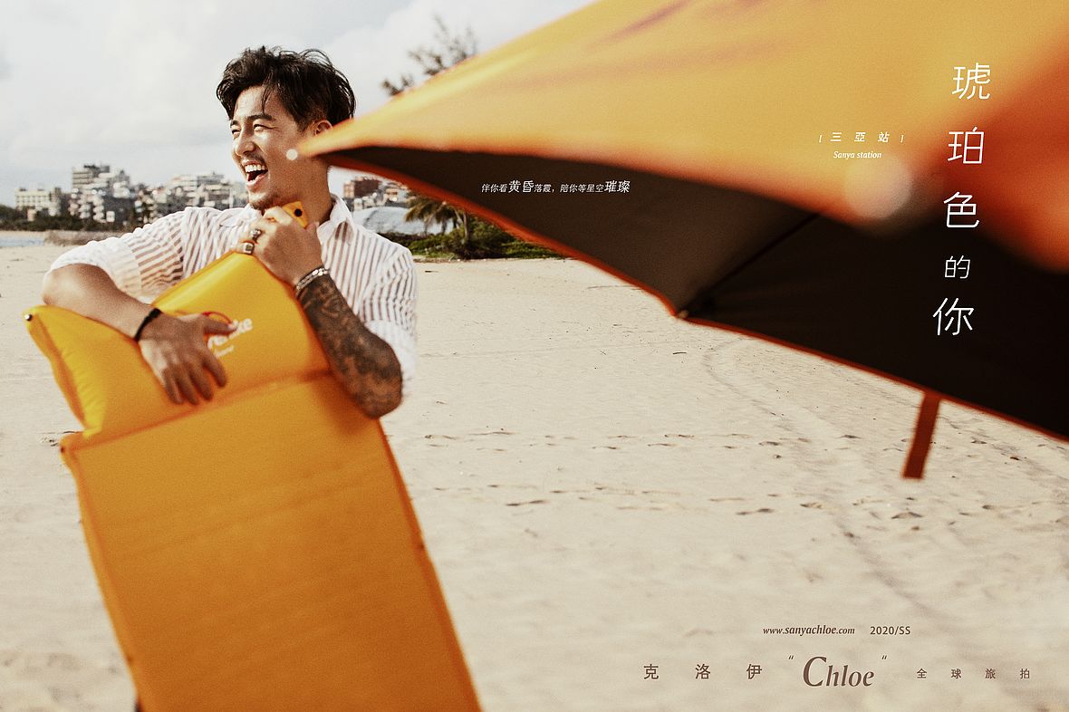 ins风格遮阳伞,橙色气垫沙滩椅,如午后阳光一般的橙色元素,给这次“约会”注入充满活力的灵魂。
