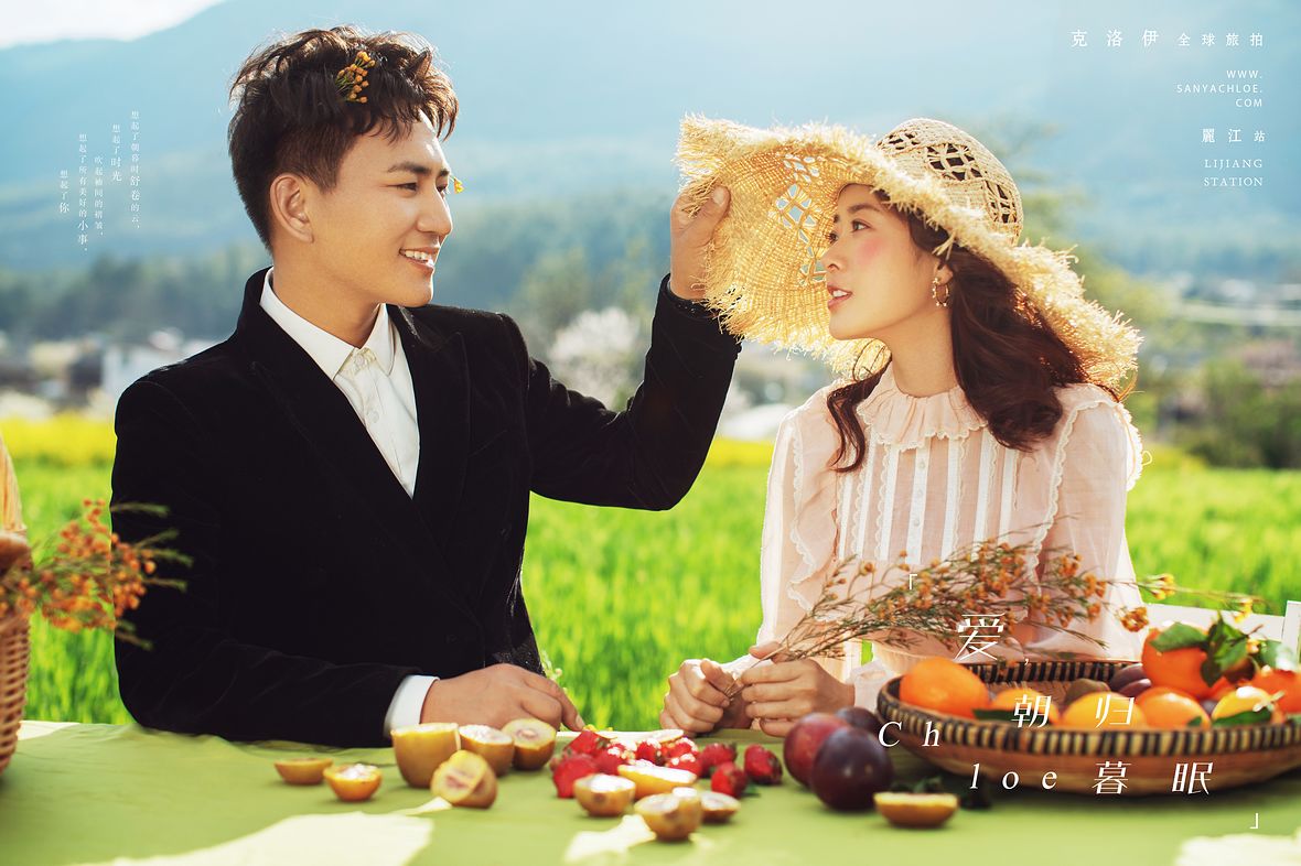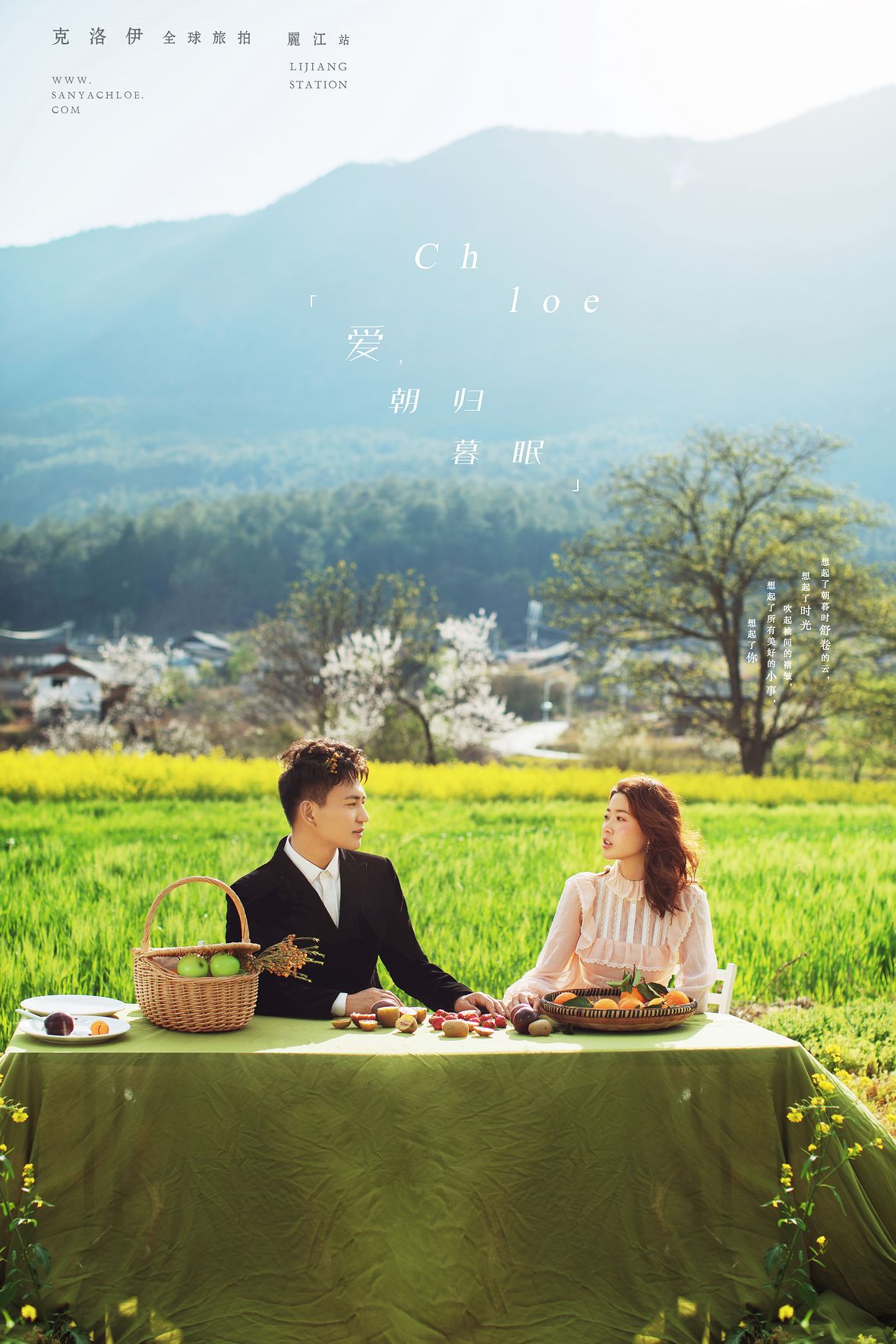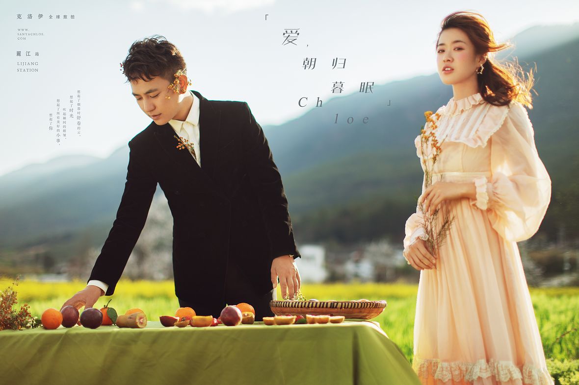 克洛伊此次主题拍摄,将田园和踏春结合在一起,拍摄春日踏春式田园感婚纱照。克洛伊美学大师,在场景的布置上,运用了和谐美的色彩搭配手法,打造了不破坏自然美感的拍摄场景。一张桌子两把椅子,选择相近的色彩桌布,桌子上陈设琳琅满目的水果,制造踏春的氛围。