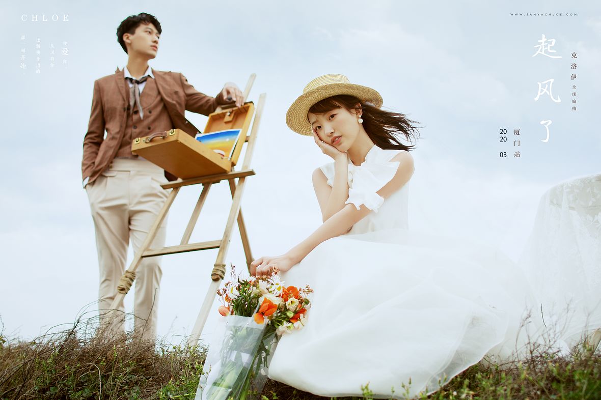 克洛伊引用《起风了》里的经典桥段,还原电影中的浪漫场景,纪实、婚礼的元素加以烘托照片故事的幸福感。打造动画电影《起风了》同款场景婚纱照。
